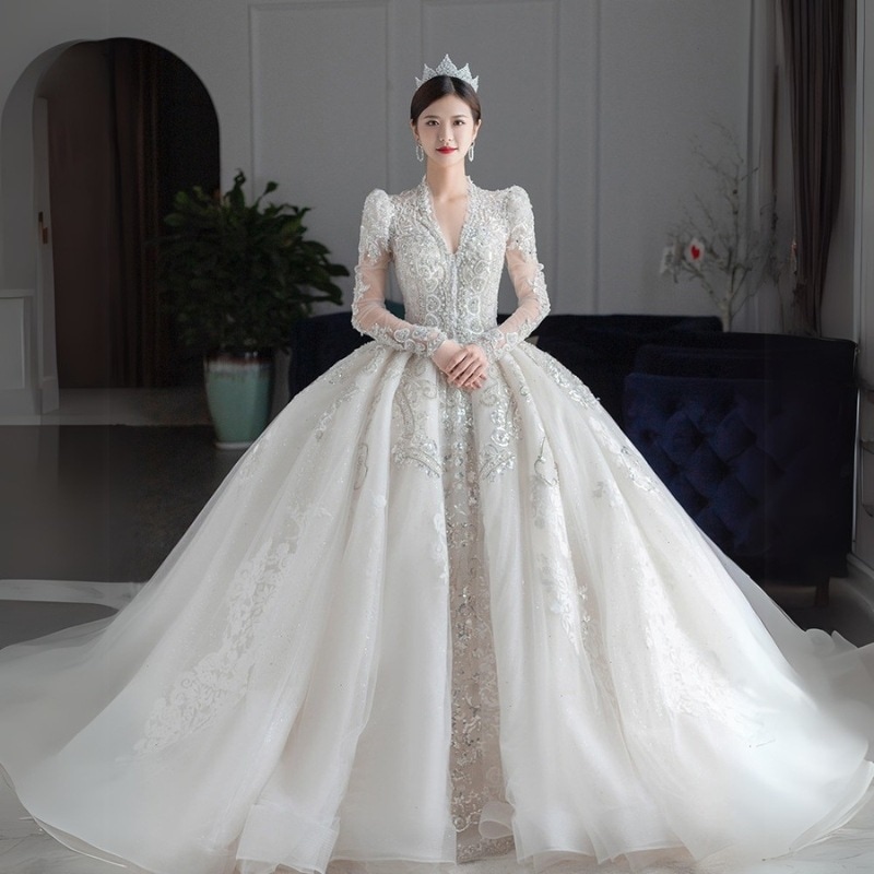 ウエディングドレス ロングドレス ウェデイングドレス 長袖 結婚式 フォーマルドレス お呼ばれ ピアノ発表会 二次会 パーディードレス Aライン マキシ丈ドレス