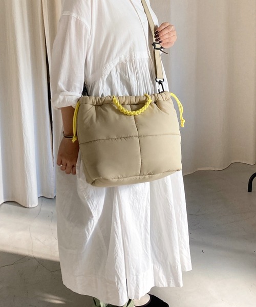 紐の絞り加減で、ハンドル長さも調整できます。取外しが可能なショルダーが付いているのも嬉しいポイント。