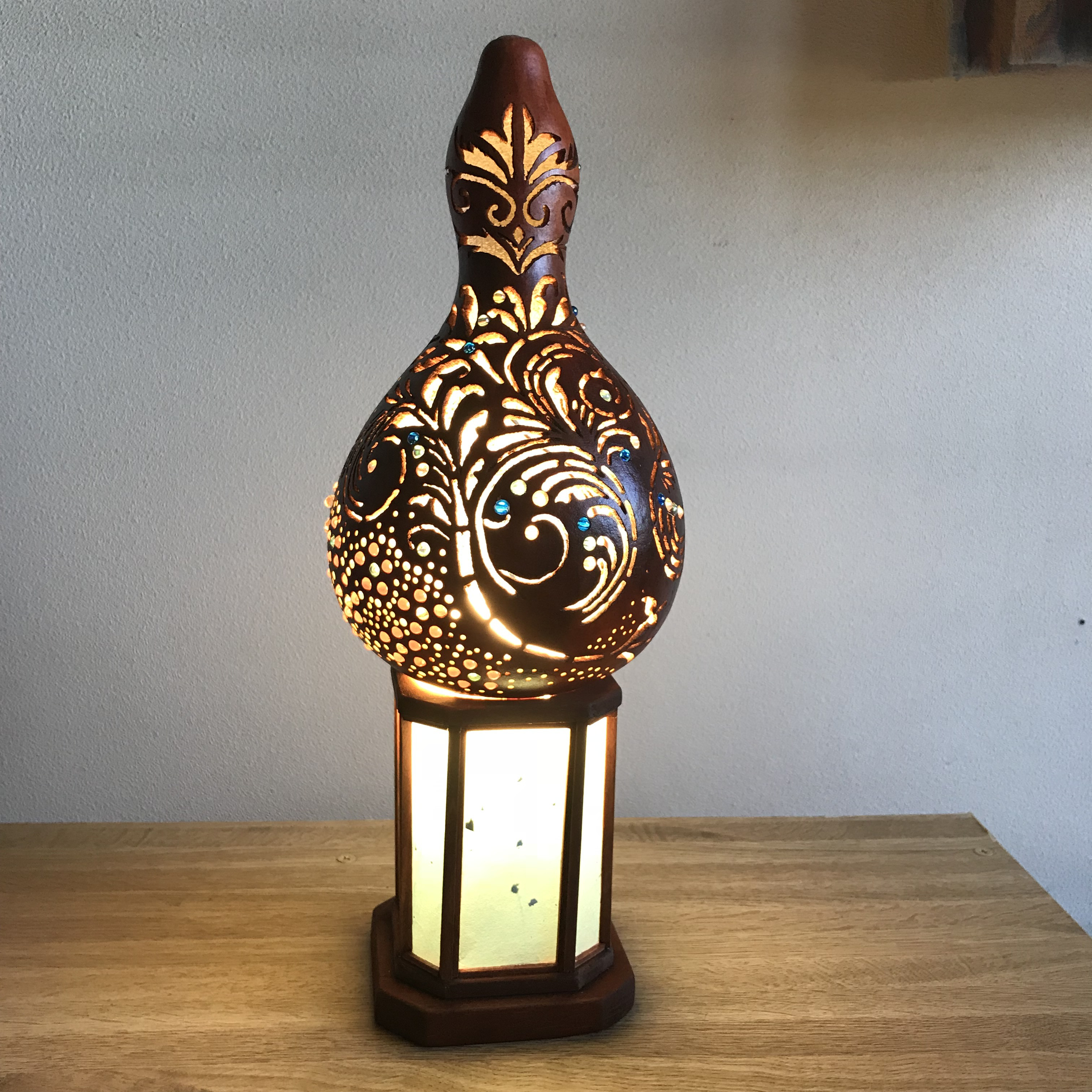 魅力的な価格【ハンドメイド】ひょうたんランプ 唐草模様