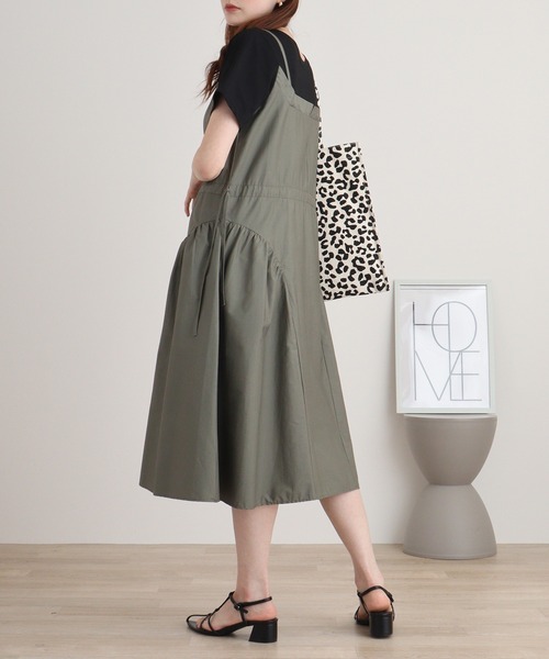 レイヤード風で1枚でばっちり!ウエストマークもできるワンピース。落ち感のあるギャザーがきれいなフレアラインをつくります。無地なので、いろいろなコーディネートに合わせやすいです。1枚でサラっと着るのはもちろん、パンツをレイヤードしてもオシャレに決まります。