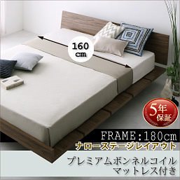 激安通販[組立設置付]ローベッド [マスターピース] プレミアムボンネルコイルマットレス付 ナローステージ クイーン(Qx1) フレーム幅180 [マットレス]白