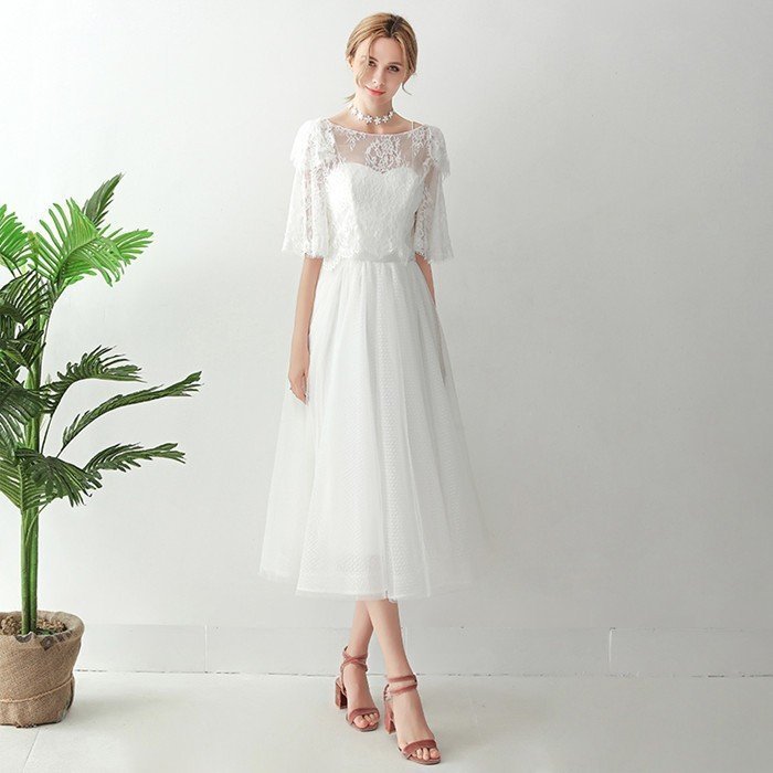 ミニ丈ドレス 二次会 ウェディグドレス 花嫁 パーティドレス 結婚式 白 ワンピース 演奏会 大きい