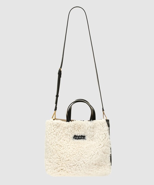 ・マルニ定番のムゼオバッグシリーズ・グレインレザーとシアリングをバイカラーで表現したMUSEO BAG・グレインレザー生地にメンディングロゴを施したレザーパッチ・モコモコ感がポイント