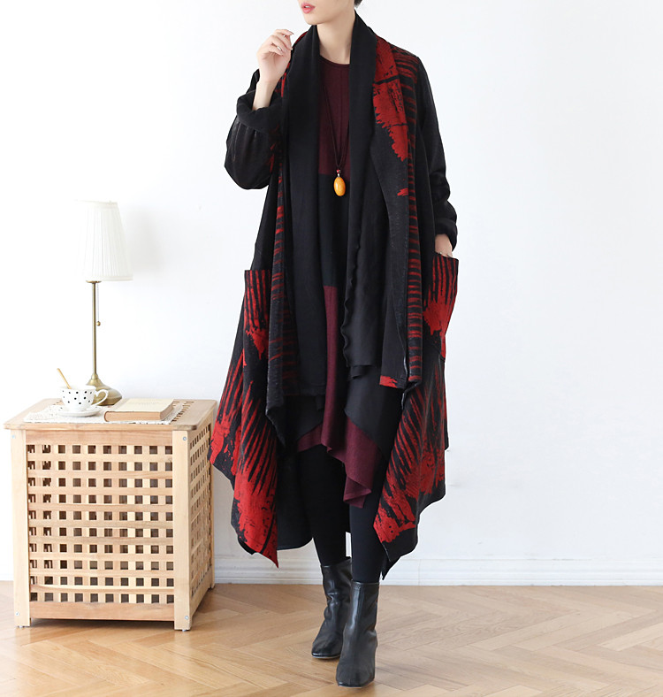 うまく売れる芸術性を感じるペイントデザイン♪裏起毛付きレイヤードコート レッド