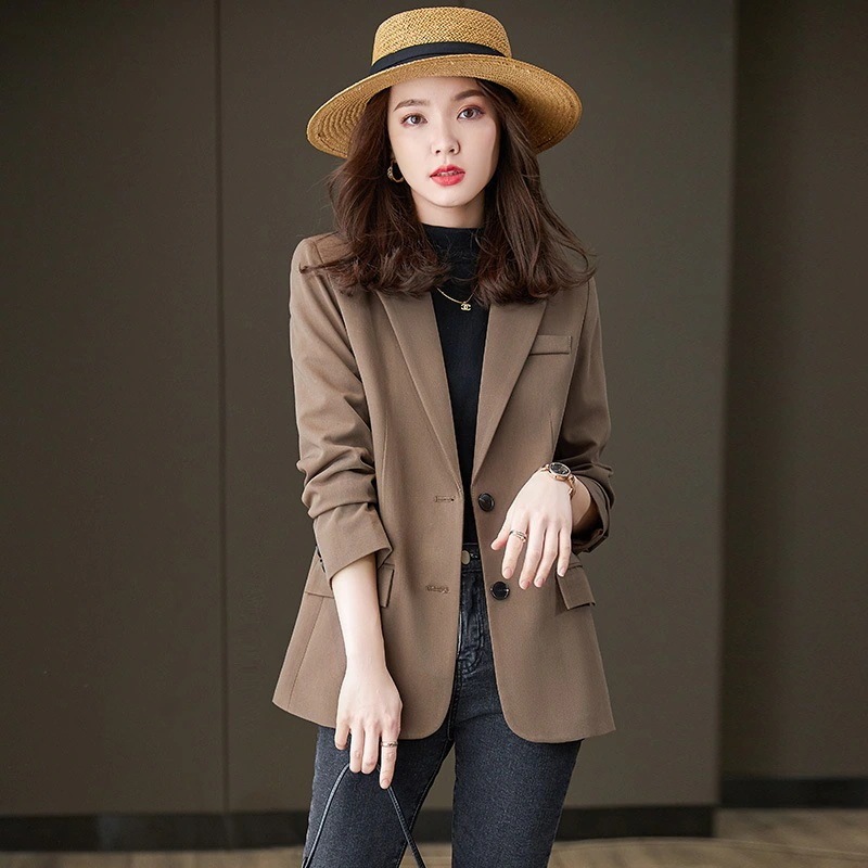 初春 新作 長袖ブレザー ポケット 韓国風カジュアルな小さいスーツ レディース アウター コート
