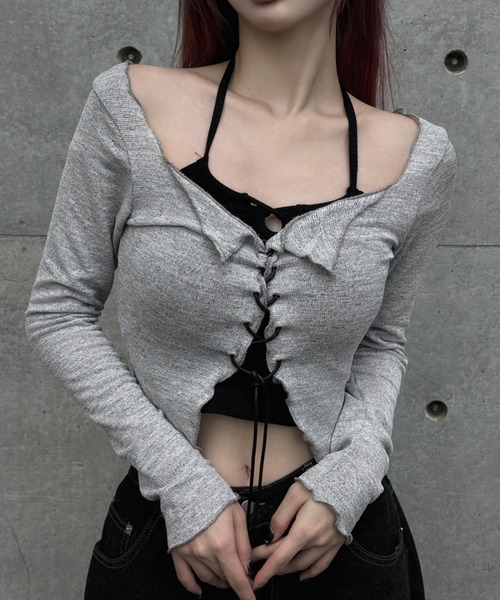 本物のレースアップクロップドトップス+キャミ(Tシャツ/カットソー)|KsG(ケーエスジー)